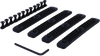 The honeycomb texture delivers a tactile, secure grip that aids in weapon retention and repeatable hand placement, especially during quick transitions or when wearing gloves. Installation is simple and does not require tools, allowing users to reposition panels as needed to suit differing hand sizes or ergonomic preferences. The four-pack configuration supports modular customisation, enabling partial or full rail coverage depending on user setup. With their clean fitment and robust finish, the panels provide a refined, reliable interface between shooter and rifle, improving confidence and handling precision during varied shooting tasks.